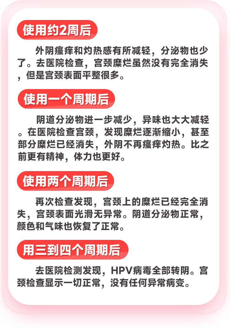 讲真的,在经历过那么多治疗HPV的手段之后的我刚开始是不信的,但是想着现在也没什么其他好的方法,死马当活马医吧,半信半疑的使用了一段时间,没想到外阴充血水肿、下腹胀痛、白带异常恶臭等症状减轻很多,这让我看到了希望,于是更深入地了解了【抗HPV三联疗法】