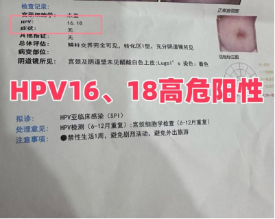 HPV16、18型高危阳性